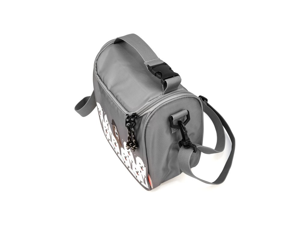 Velmi pohodlná taška má kapacitu 3,5l. Dětská taška pojme vše, co dítě ke svačince potřebuje. Dá se nosit v ruce, přes rameno, můžete ji pověsit na jiný batoh nebo kolo, případně přidat k obsahu jiné tašky. Má hravý vzhled s motivem zvířátek