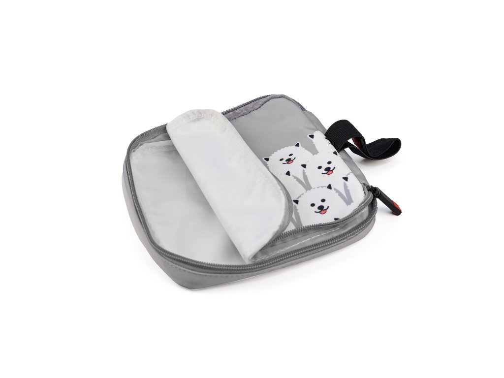 Vnitřní část pouzdra je voděodolná, zapínaní na zip pro jednoduché vyjmutí svačiny. Ideální pro nošení v tašce nebo batohu. Má hravý vzhled s motivem zvířátek Voděodolná vnitřní část má také certifikaci pro bezpečný styk s potravinami.