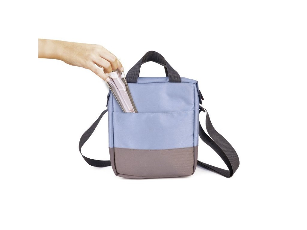 Obsahuje dvě kapsy, jednu vpředu a jednu vzadu, na příbory, ubrousky nebo jiné osobní věci. Jedna z kapes je na zip a druhá se zapíná na suchý zip. Navíc ji lze nosit jako tašku přes rameno díky výškově nastavitelnému popruhu nebo v ruce s pohodlnými držadly.