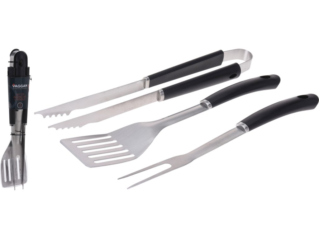 Tento set grilovacího nářadí skvěle využijete při grilování s přáteli. Vše je vyrobeno z nerezové oceli s kovovou rukojetí a snadno padnou do ruky. Set obsahuje kleště, dvojzubou vidličku a obracečku. Jsou vyrobeny tak, aby vydržely žár.