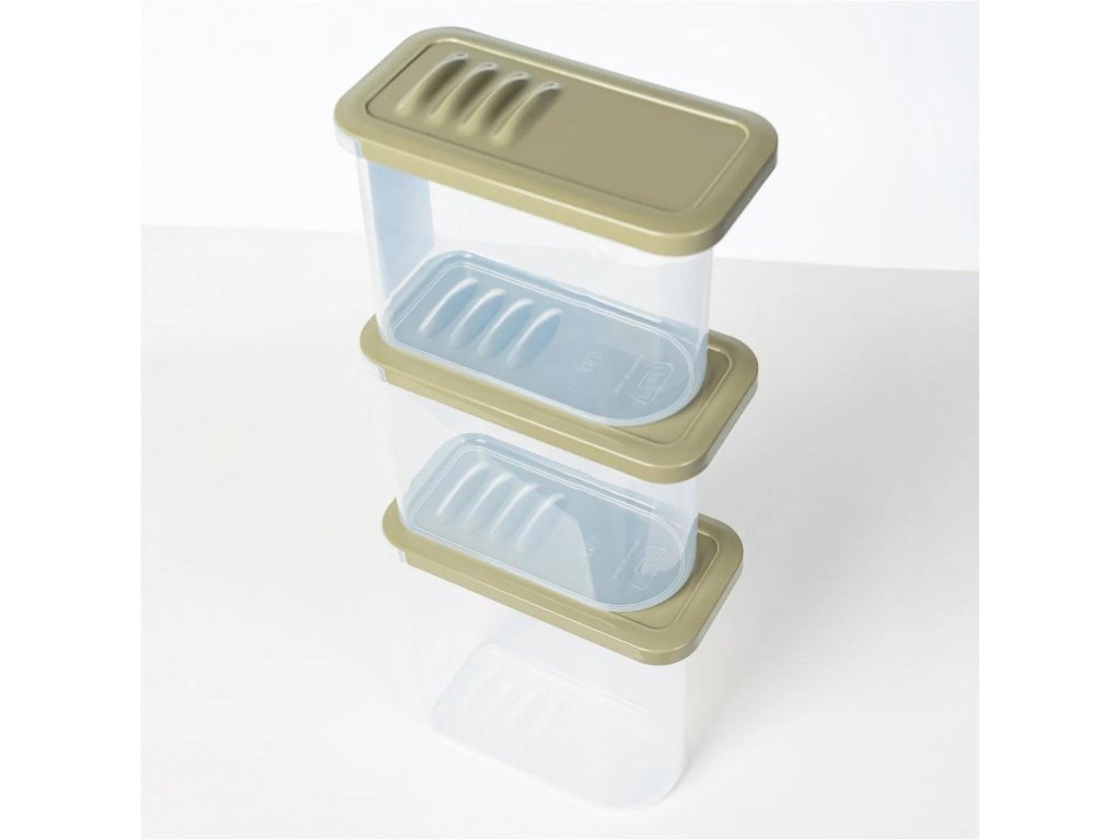 Dózy mají decentní, nadčasový design a víko má výrazné výstupky připomínající žraločí žábry, odtud název kontejneru. Jejich dno má prohlubně, které ladí s výstupky na víku, takže lze dózy snadno stohovat. Jsou k dispozici v několika barvách a velikostech. Jejich zaoblený tvar a materiál příjemný na dotek dokonale reprezentují tichý designový styl, který se vyznačuje měkkými tvary, estetickou jemností a nadčasovou formou.