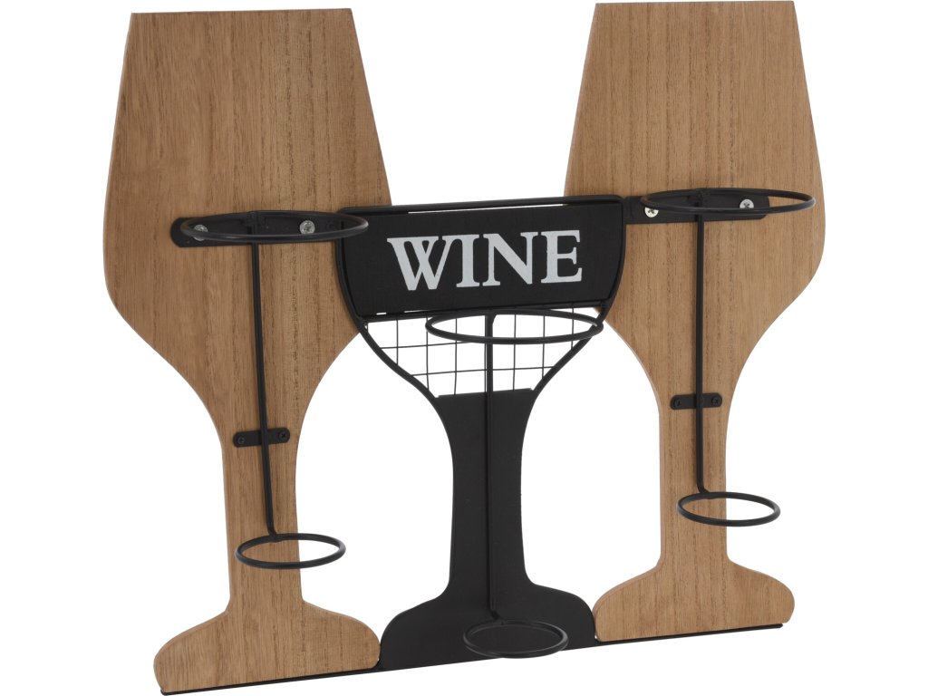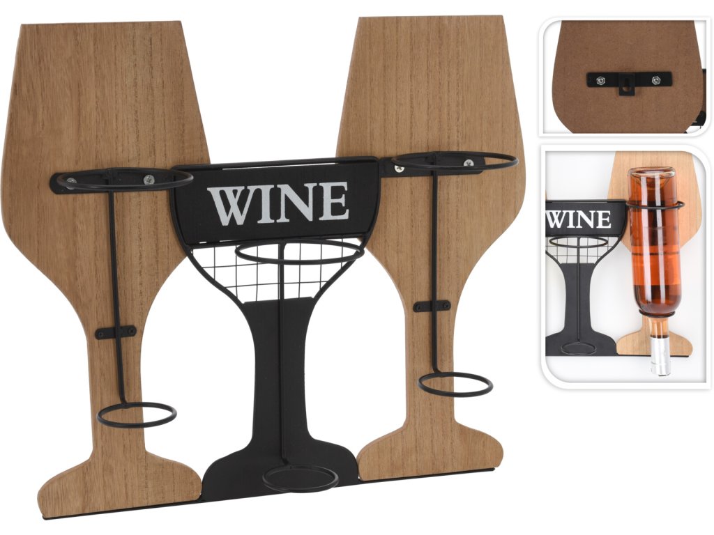 Závěsný stojan na víno je vyrobený z kovu a dřeva, kovové držáky zajistí ideální stabilitu pro Vaše vína. Držák na tři lahve vína Vás upoutá svým atraktivním designem a kvalitním zpracováním. Rozměry 39x11x35cm.