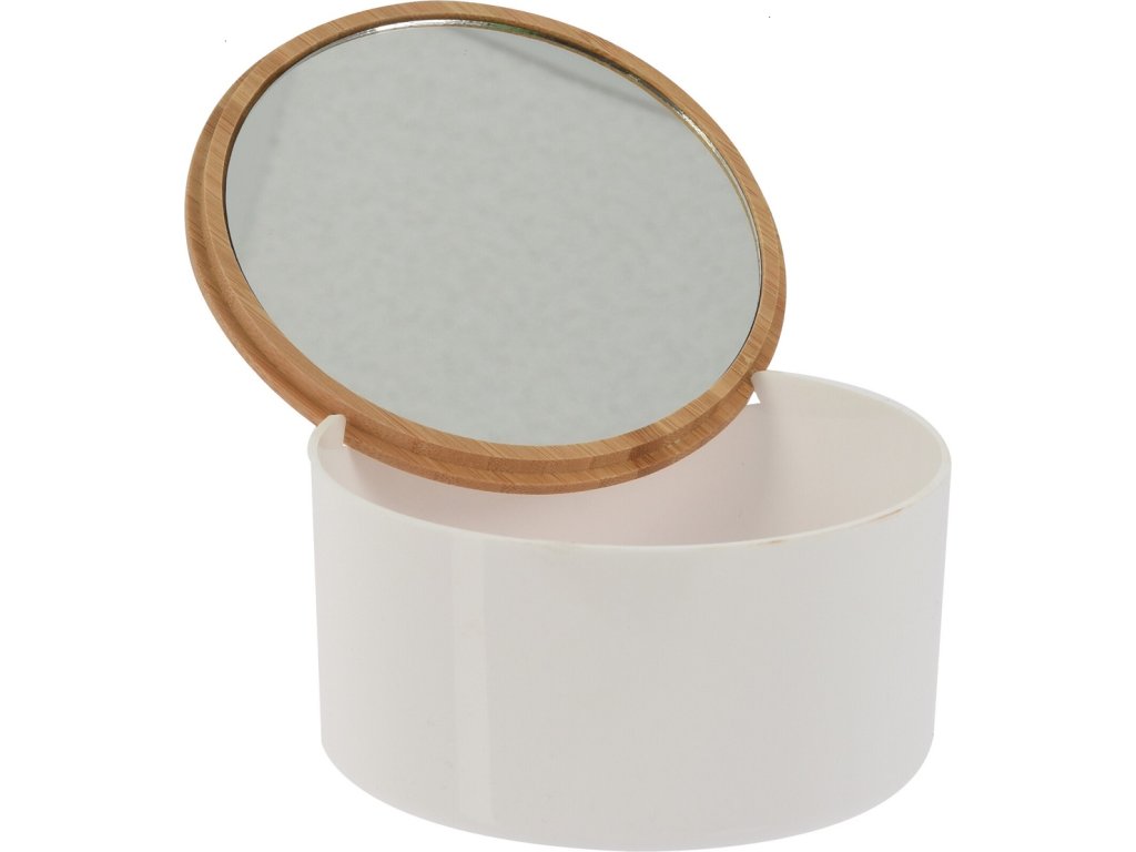 Stylový a jednoduchý design dovoluje organizér postavit v jakékoliv místnosti vašeho domova. Vnitřek organizéru je členěný do 3 částí. Uložit si do něj můžete kosmetické potřeby, kosmetiku samotnou, laky na nehty, šperky, pinzety, štětce aj. Víko má poutko pro snadné otevření a z jeho druhé strany je zrcátko, které snadno zapřete do krabičky tak, abyste na sebe při kosmetických úpravách viděli. Organizér je připravený sloužit vám nejen doma, ale i na cestách.Na make-up, kosmetické potřeby, šperky apod.