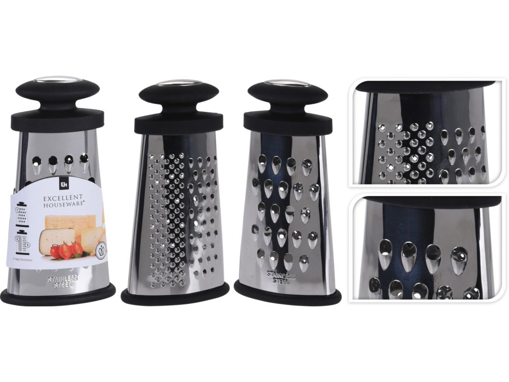 Od hrubého po jemné, díky různým čepelím z nerezové oceli na tomto oválném struhadle můžete své ingredience strouhat přesně tak, jak to máte rádi. Jednoduše uchopte své ovoce, zeleninu nebo jiné potraviny mávnutím ruky díky ergonomické rukojeti měkké na dotek a nastrouhejte, nastrouhejte nebo nastrouhejte. Během strouhání se nemusíte obávat škrábanců nebo jiných stop na kuchyňské desce, protože pryžová základna struhadla ochrání jakýkoli povrch. Výška 15 cm