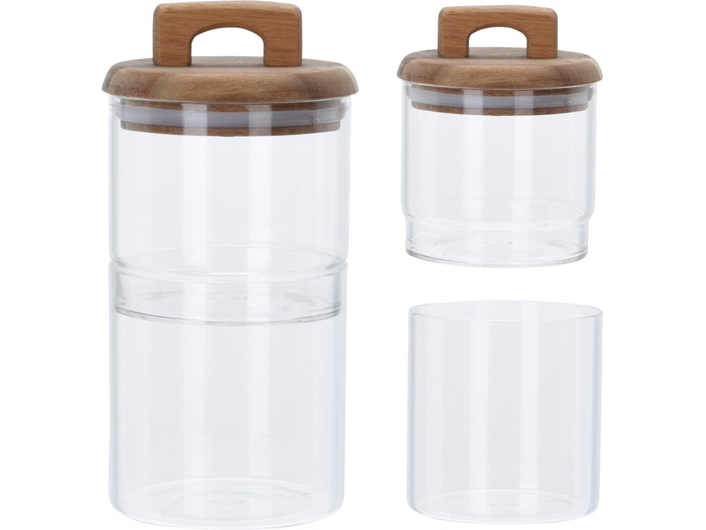 Objem 700 ml každá dóza, výška dóz bez víka 9,5 cm, průměr 10 cm, celková výška obou dóz na sobě s víčkem 23 cm