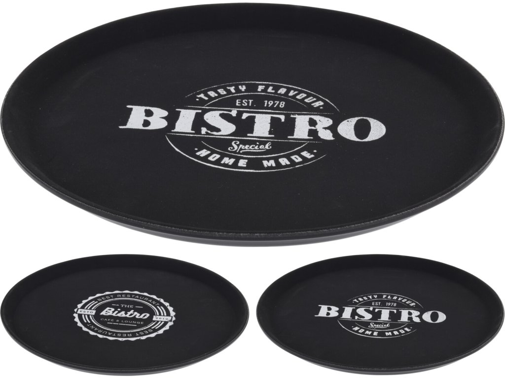 Servírovací tác má průměr 35 cm, vzhledem k pogumované protiskluzové části nedoporučujeme mytí v myčce.