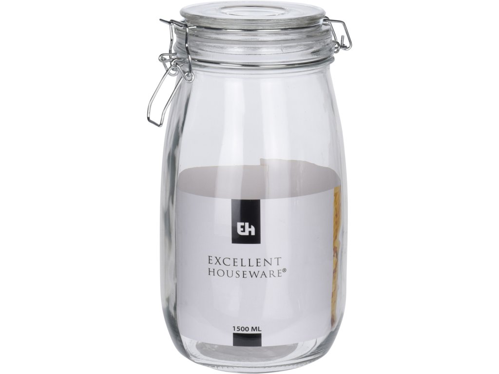 Uzavíratelná sklenice z čirého skla pro zavařování nebo skladování potravin s klipem a gumovým těsněním. Lze použít na skladovaní, zavařování, na paštiky, mastičky nebo krémy. Vzduchotěsné víko pomáhá déle uchovávat chuť a aroma jídla Výška 21,5 cm, průměr dna 10 cm.