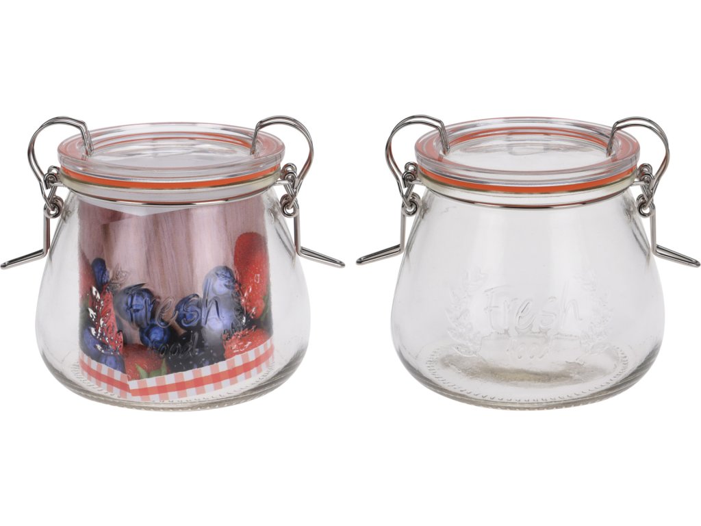 Drátěné klipy na obou stranách slouží k otevírání a uzavírání dózy a jejich pomocí tak lze víko úplně vyjmout. Tento systém usnadňuje čištění dózy. Můžete ji použít k uskladnění potravin, jako jsou sypké potraviny, ovoce, zelenina, saláty nebo předem připravených jídel. Výška dózy je 9,5 cm, průměr 9 cm, průměr dna 10 cm