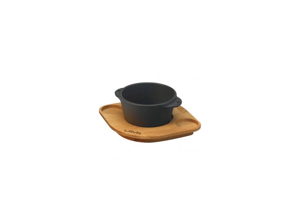 LAVA METAL Litinová miska na souffle 8 cm s dřevěným podstavcem