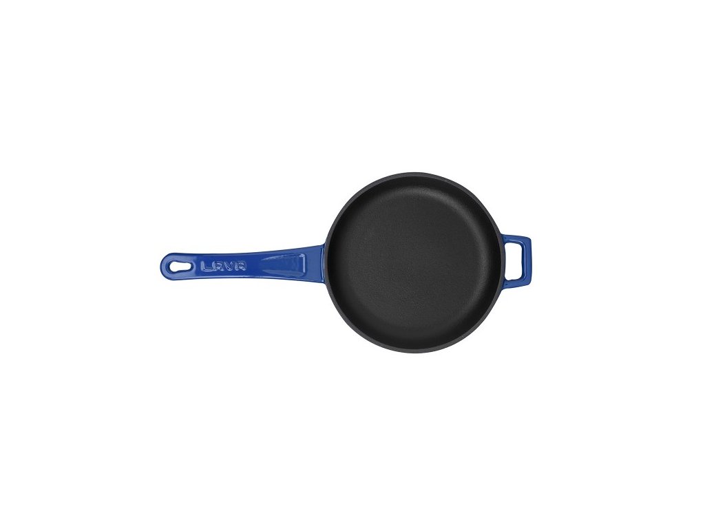 Elegantní modrá litinová pánev je ideální doplněk k plynovým, elektrickým grilům, ale i ke grilům na dřevěné uhlí. Ploché dno umožňuje použití také na sklokeramických, indukčních, elektrických ale i plynových sporácích. Litinová pánev se vyznačuje robustní konstrukcí a vynikajícími tepelnými vlastnostmi. Jedná se o produkt s nepřilnavým povrchem. Má široké možnosti využití, je skvělá pro přípravu příloh a omáček, ale i pro smažení při vysokých teplotách. Můžete na ní také připravovat vajíčka, lívance nebo palačinky, popřípadě zapéct pokrmy v troubě. Průměr 16 cm, výška 3 cm.