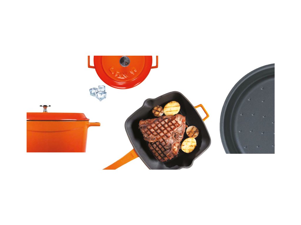 Smaltovaný povrch zaručuje hladký, nepřilnavý a lehce omyvatelný povrch, který je dokonale spojen s hrubým jádrem litiny. Povrchová úprava si zachovává pružnost a nestane se, že by smalt popraskal vlivem vysokých teplot či nárazů při používání. Jasné barvy navíc fungují jako dekorace do Vaší kuchyně.