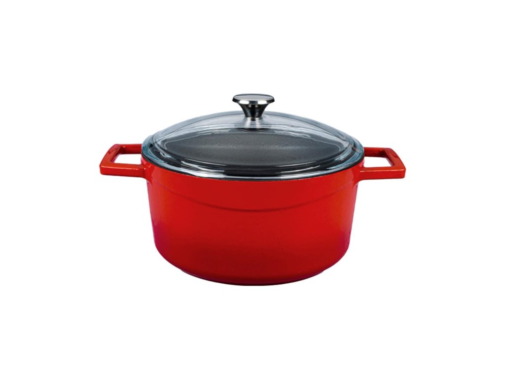 LAVA METAL Litinový hrnec kulatý 20cm se skleněnou poklicí - červený