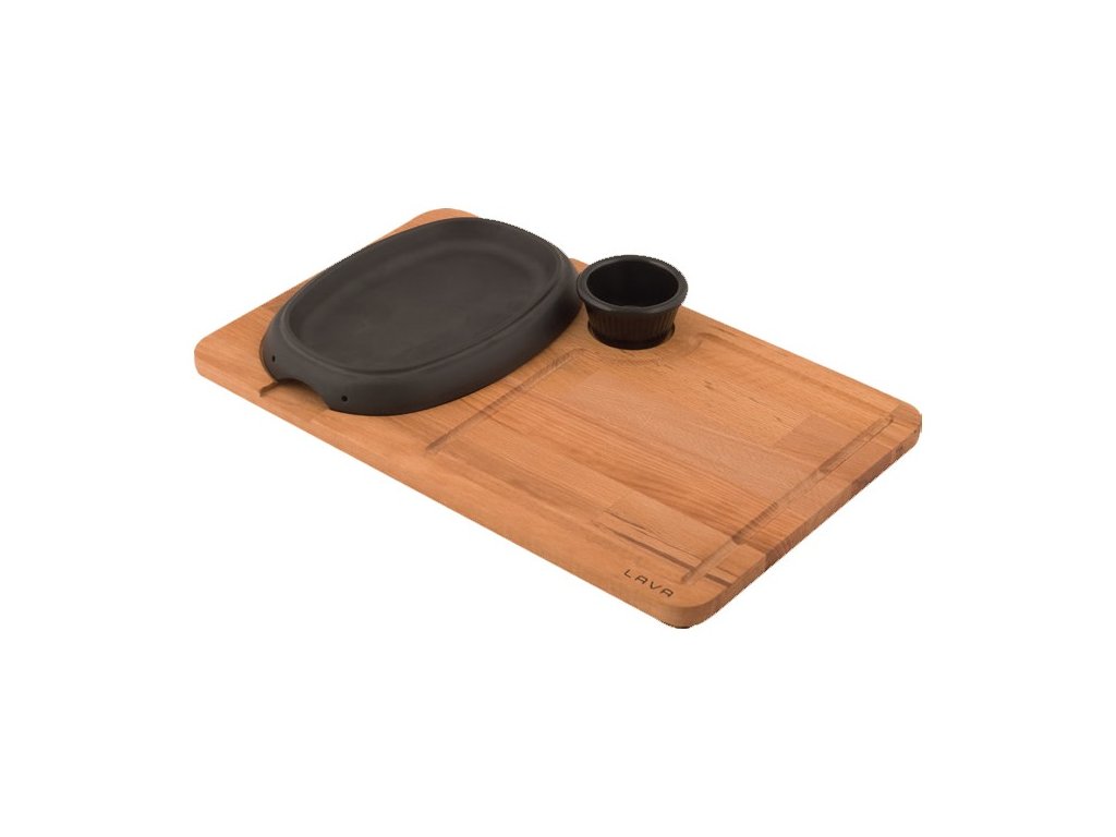LAVA METAL Litinový talíř 12x19 cm s velkým dřevěným podstavcem