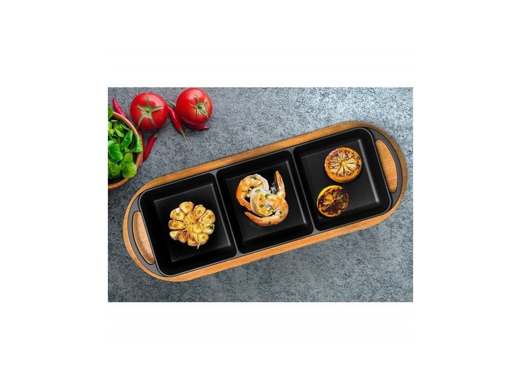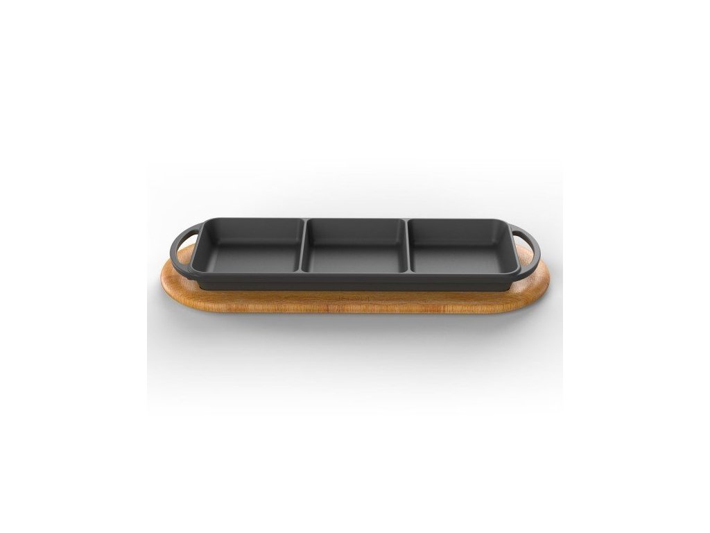 Představivosti a kreativitě se meze nekladou. Tato elegantní litinová plotýnka je rozdělená na tři pole, díky kterým můžete zároveň připravovat fazole, vejce a nebo šunku a slaninu. Má rozměry 12x33 cm a je vyrobena z kvalitní litiny, která má opravdu dlouhou životnost, perfektně vede teplo, je odolná proti korozi, poškrábání a odštípnutí. Plotýnku můžete používat na všech typech grilů a vařičů včetně indukce, je vhodná i pro zapékání v troubě a stane se tak praktickým pomocníkem ve Vaší kuchyni. Díky skvělým tepelným vlastnostem litiny a praktickému dřevěnému podstavci můžete pokrmy z pánve rovnou servírovat, jídlo tak zůstane dlouho teplé. Litinové nádobí je oblíbené mezi šéfkuchaři, protože skvěle drží teplo a je prakticky nerozbitné.