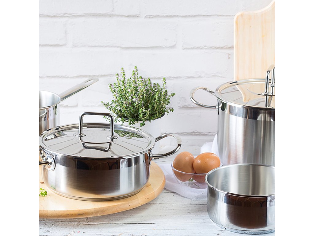 Praktický nerezový hrnec o průměru 16 cm s výškou 7 cm a objemem 1,25 l je vyroben z prvotřídní nerezové oceli. Je vhodný na přípravu příloh, omáček, má multifunkční využití. Nádobí řady Profesional je ideální k používání jak v profesionálních gastronomických kuchyních, v jídelnách nebo restauracích, ale i k vaření v domácnostech. Hrnec je vhodný k užívání na plynových, elektrických, ale i indukčních sporácích a to díky svému speciálnímu dnu. Dno je sendvičového typu, složené ze tří vrstev za pomoci nerezové oceli a hliníku. Díky tomuto systému nádobí umožňuje vynikající rozvod tepla, které je důležité během procesu vaření. Hrnec má také zesílenou rukojeť pro snadnou manipulaci během přípravy jídla. S nádobím Profesional dosáhnete profesionálního způsobu vaření.