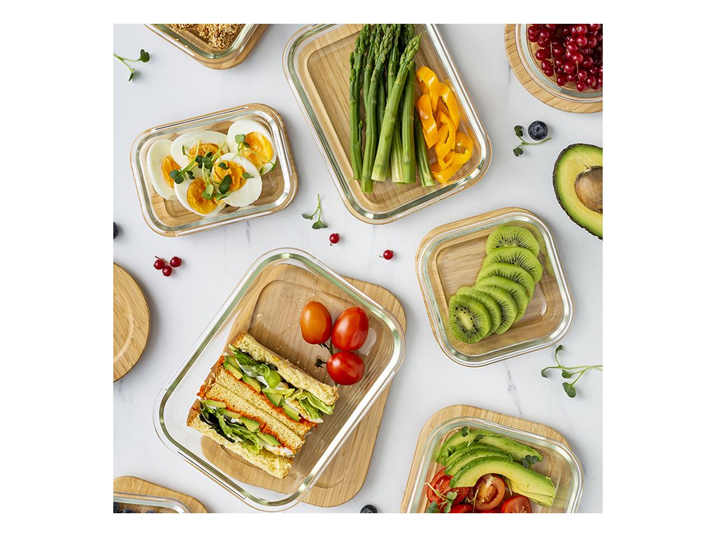 Bambusové víčko je vyrobeno z přírodního materiálu, který je odolný a snadno se udržuje. Bambusové dřevo je přirozeně antibakteriální, takže pomáhá udržet potraviny čerstvé. Těsnění je vyrobeno ze silikonu a zabraňuje vniknutí vzduchu a vlhkosti do dózy. Sklo je žáruvzdorné, nepřenáší pachy a je odolné proti poškrábání. Výška dózy 5,9 cm, průměr dózy 13,4 cm. Skleněná dóza (bez víčka) je vhodná do mikrovlnné i klasické trouby, mrazáku, je možné mýt ji v myčce.