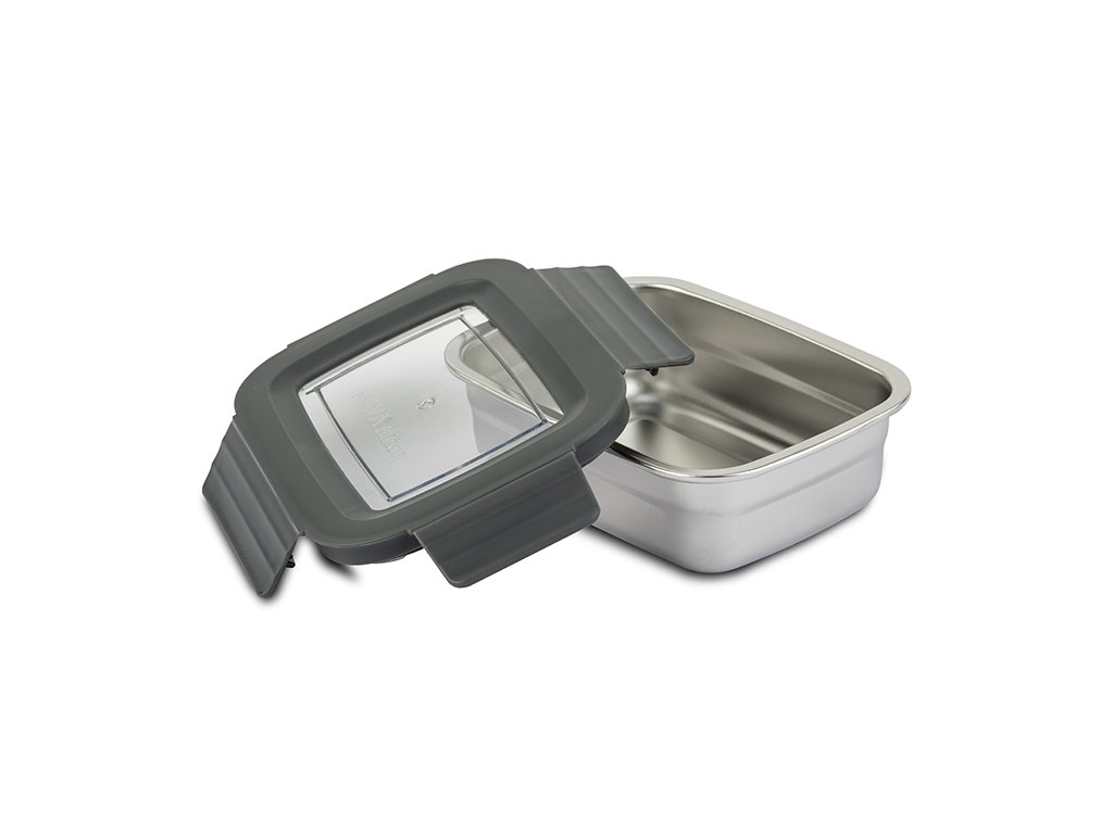 Je vyrobena z vysoce kvalitní nerezové oceli 18/8. Bez BPA, PVC, ftalátů nebo jiných škodlivých látek je zcela bezpečná pro hygienické skladování potravin. Má kapacitu 400 ml a ergonomický tvar pro přenášení jídla nebo občerstvení, kamkoli budete chtít. Víko má 4 uzavírací spony pro dokonalé utěsnění .