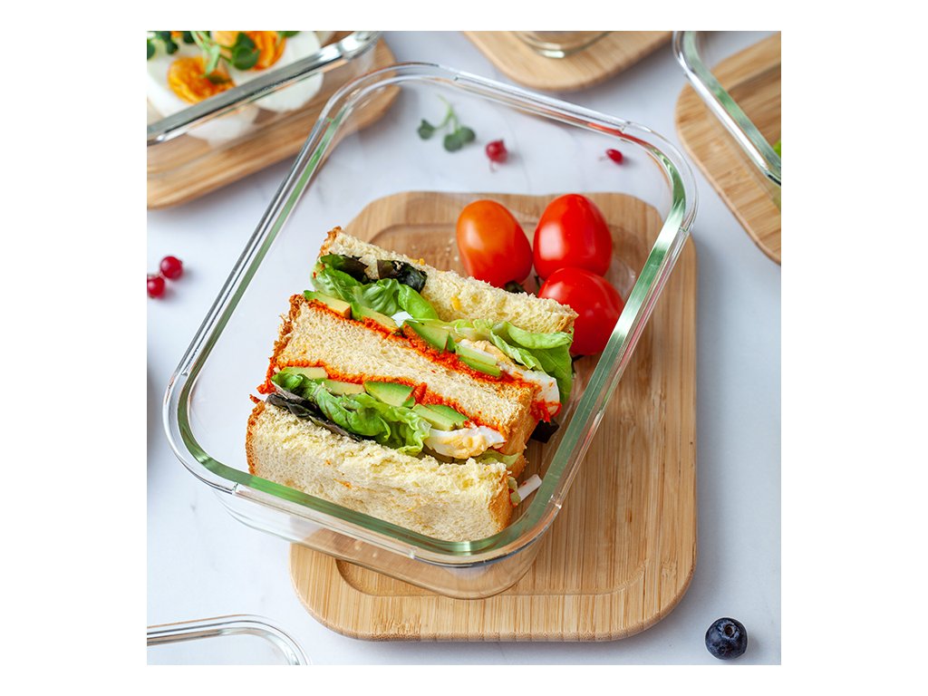Bambusové víčko je vyrobeno z přírodního materiálu, který je odolný a snadno se udržuje. Bambusové dřevo je přirozeně antibakteriální, takže pomáhá udržet potraviny čerstvé. Těsnění je vyrobeno ze silikonu a zabraňuje vniknutí vzduchu a vlhkosti do dózy. Sklo je žáruvzdorné, nepřenáší pachy a je odolné proti poškrábání. Výška dózy 7,4 cm, délka 22,5 cm a šířka 16,4 cm. Skleněná dóza (bez víčka) je vhodná do mikrovlnné i klasické trouby, mrazáku, je možné mýt ji v myčce.