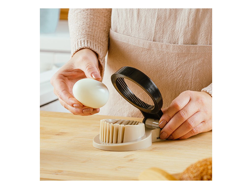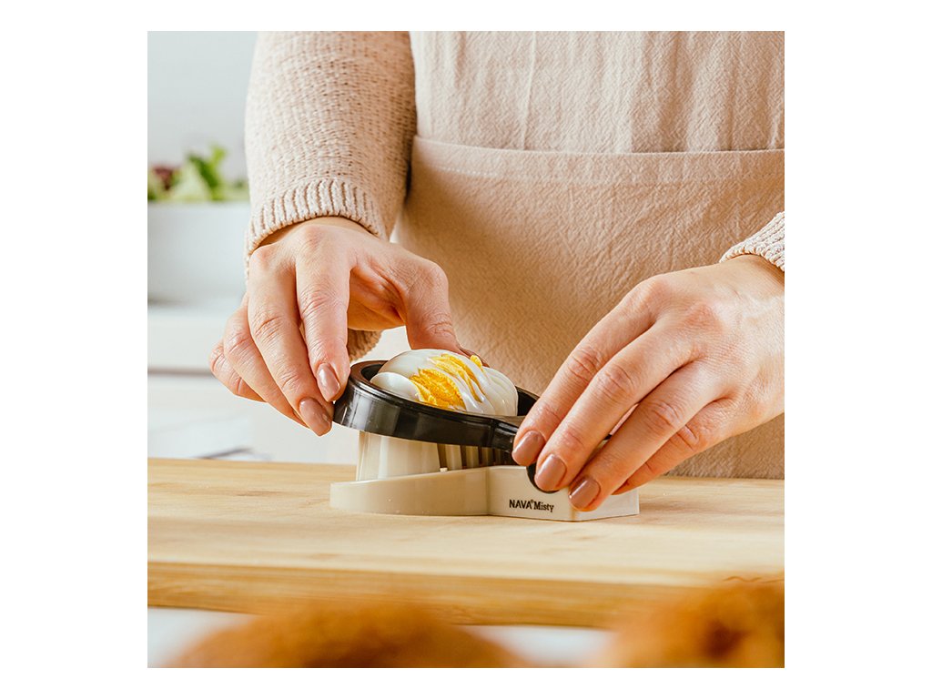 Nakrájí vařená vejce na rovnoměrné plátky, má speciálně navržený prostor pro vkládání vajec, která jsou při krájení stabilní a v kráječi nekloužou.
