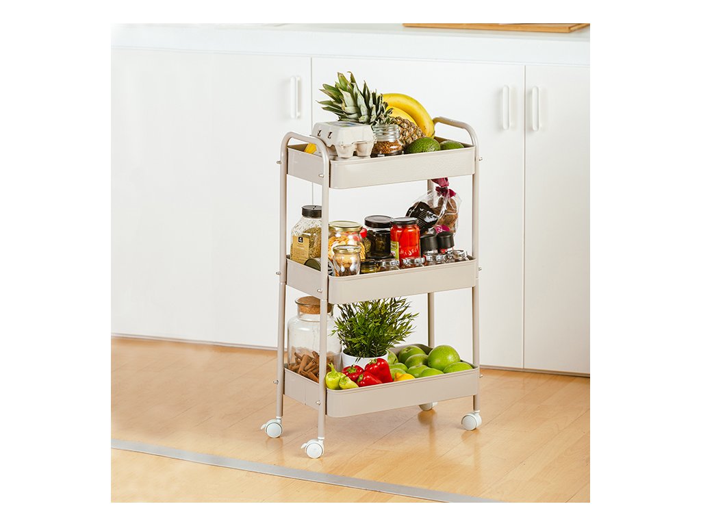 Vozík je ideální pro skladování ovoce, zeleniny, dóz na potraviny a zároveň jej lze použít v koupelně na mycí prostředky a ručníky, dokonce i v kanceláři k uspořádání různých předmětů a knih nebo v ložnici k umístění různých příslušenství.
