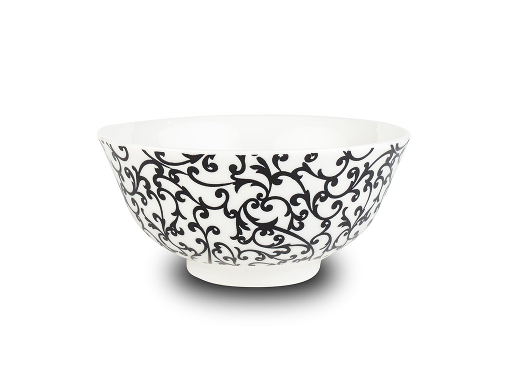 Je vyrobena z kvalitního porcelánu. Má krásný moderní dekor v černé barvě, stane se tak ozdobou Vašeho stolu nejen ve svátečních chvílích, ale její velikost a tvar zaručuje, že ji budete používat každý den. Ideální je nakombinovat ji spolu s dalším nádobím stejného dekoru. Má univerzální využití, lze ji použít k podávání vloček, jogurtů, ovoce, salátů nebo přesnídávek. Snadné mytí, vhodná do myčky i k použití v mikrovlnné troubě.