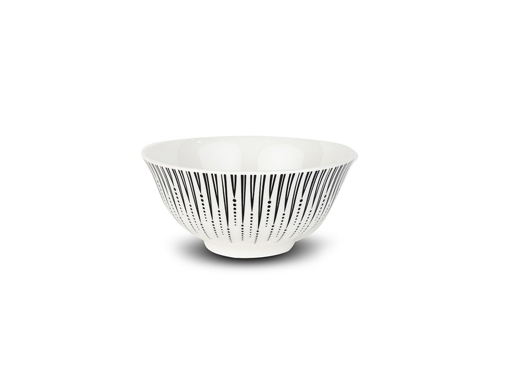 Je vyrobena z kvalitního porcelánu. Má krásný moderní dekor v černé barvě, stane se tak ozdobou Vašeho stolu nejen ve svátečních chvílích, ale její velikost a tvar zaručuje, že ji budete používat každý den. Ideální je nakombinovat ji spolu s dalším nádobím stejného dekoru. Má univerzální využití, lze ji použít k podávání vloček, jogurtů, ovoce, salátů nebo přesnídávek. Snadné mytí, vhodná do myčky i k použití v mikrovlnné troubě.