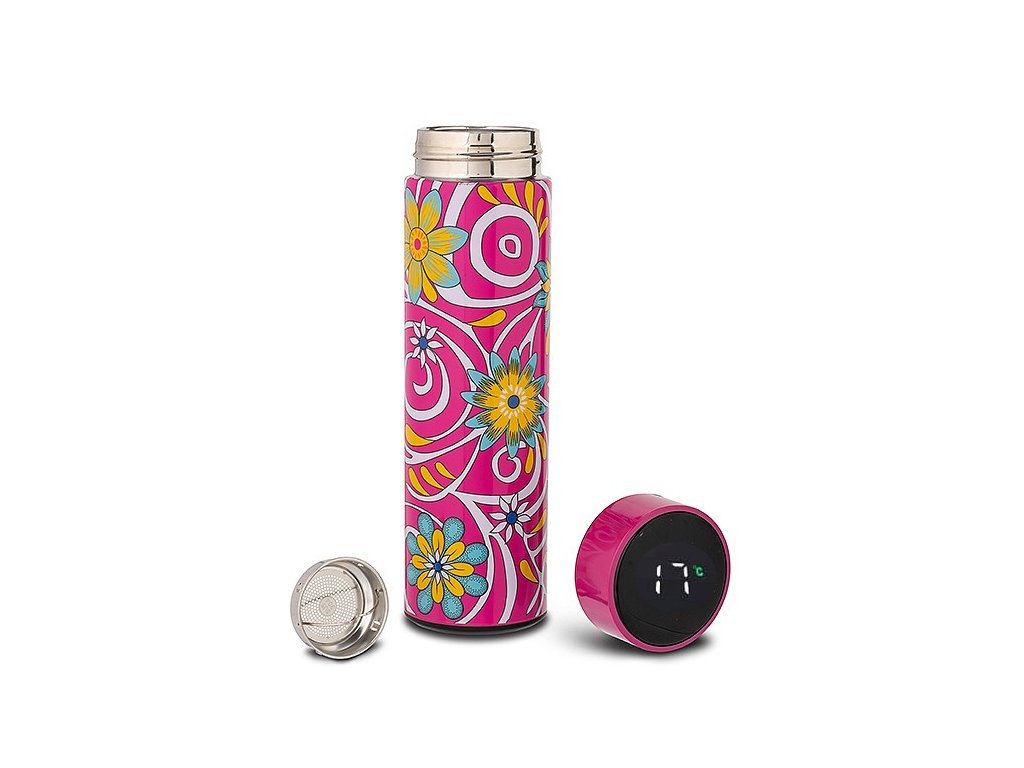 Termoska NAVA s LED teploměrem a sítkem 500ml - růžová