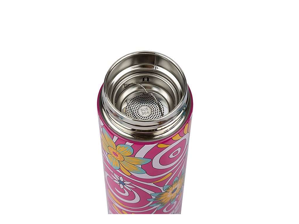 S vestavěným teploměrem na víčku můžete zkontrolovat teplotu nápoje, mléka nebo čaje vašeho dítěte jednoduchým klepnutím na vršek uzávěru. Součástí termosky je praktické kovové sítko, díky kterému můžete oddělit kávovou sedlinu nebo čajové lístky. Extrémně lehká , ideální do kanceláře, na pláž, cestování, do školy, kempování a jakoukoli outdoorovou aktivitu .